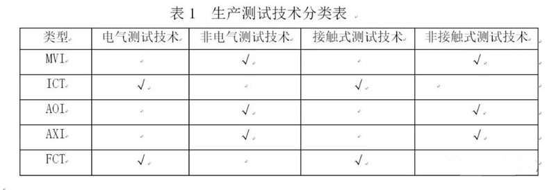 目前在电子组装测试领域中使用的测试技术种类繁多,常用的有人工目视检查(Manual Visual Inspection,简称MVI)、在线测试(In-CircuitTester,简称 ICT)、自动光学测试(AutomaticOptical Inspection,简称 AOI)、自动 X 射线测试(AutomaticX-ray Inspection,简称AXI)、功能测试(Functional Tester,简称 FCT)等。